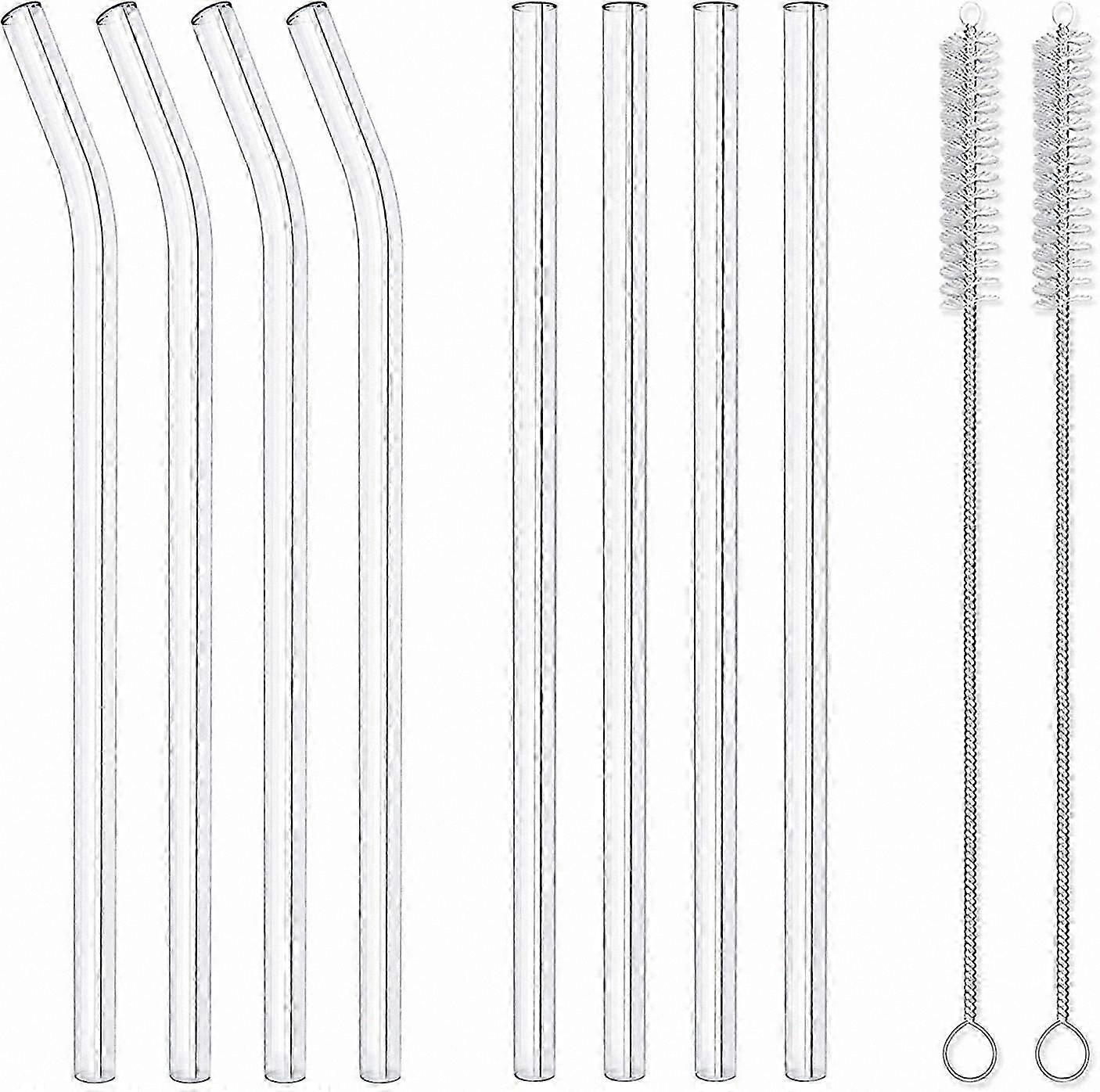 Handmade Bent Glass Straws, 8x200mm, Set of 4