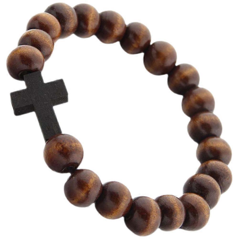 Handmade Wooden Bead Cross Bracelet Lightweight Faith Wristband for Women Religious Fashion Jewelry Accessory Gift