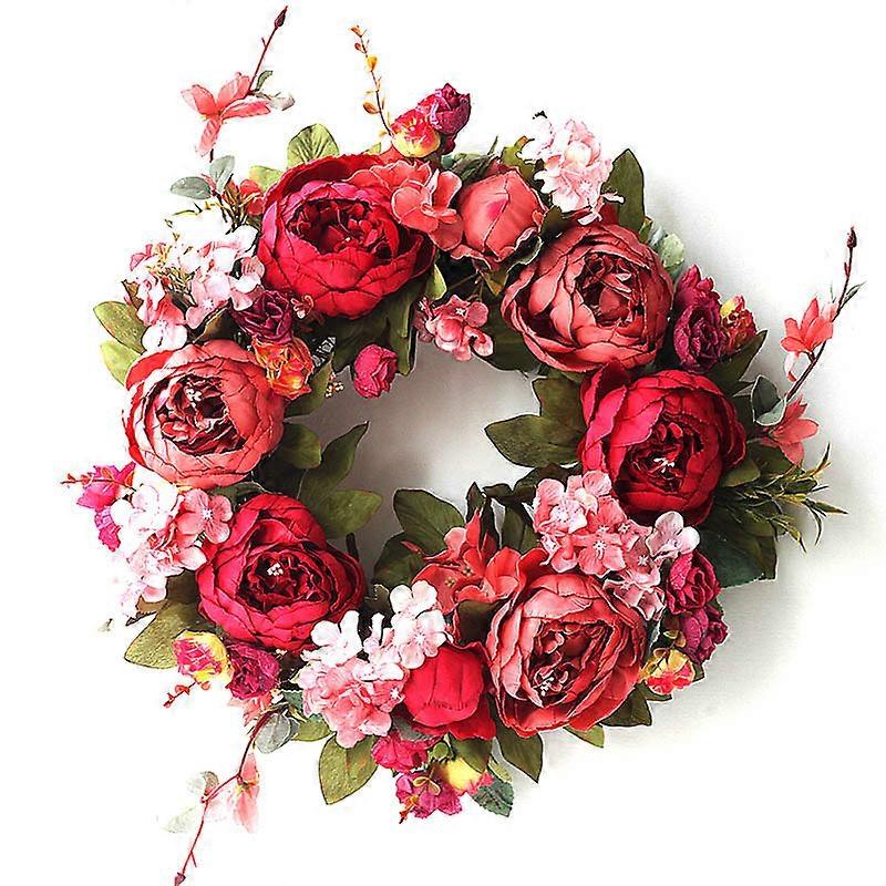 Handcrafted Peony Door Wreath Burgundy Silk Flowers