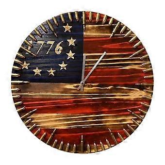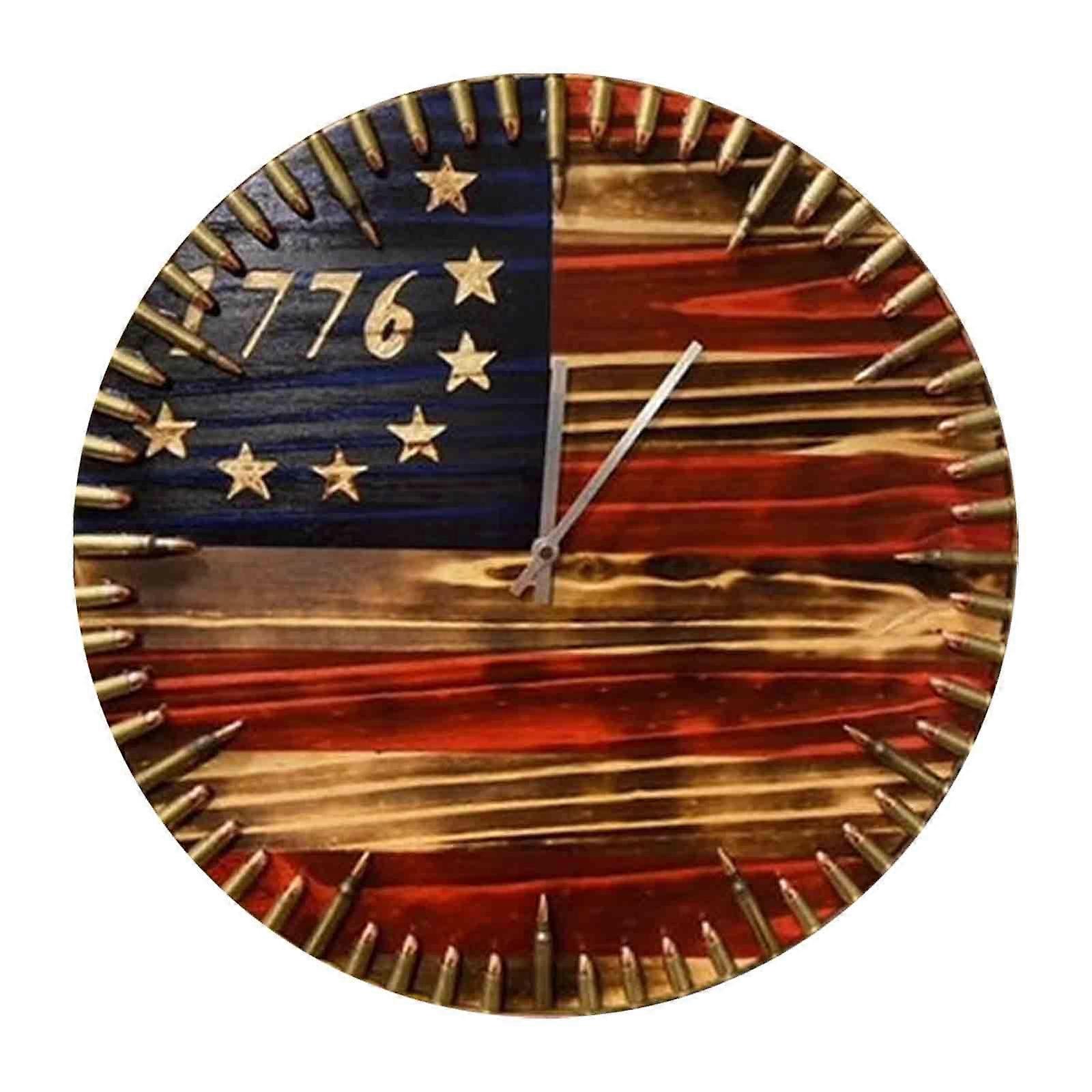 Handmade US Flag Clock, Antique Military Analog Bullet Clock Wooden Wall Clock New