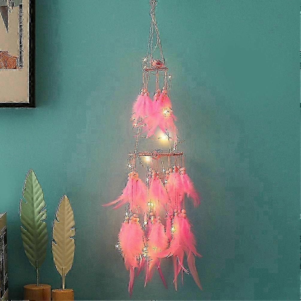 Handmade Feathers LED Light Up Dream Catcher, Bohemian Home Decor as Room Decor, Metal Circle Blessing Gift