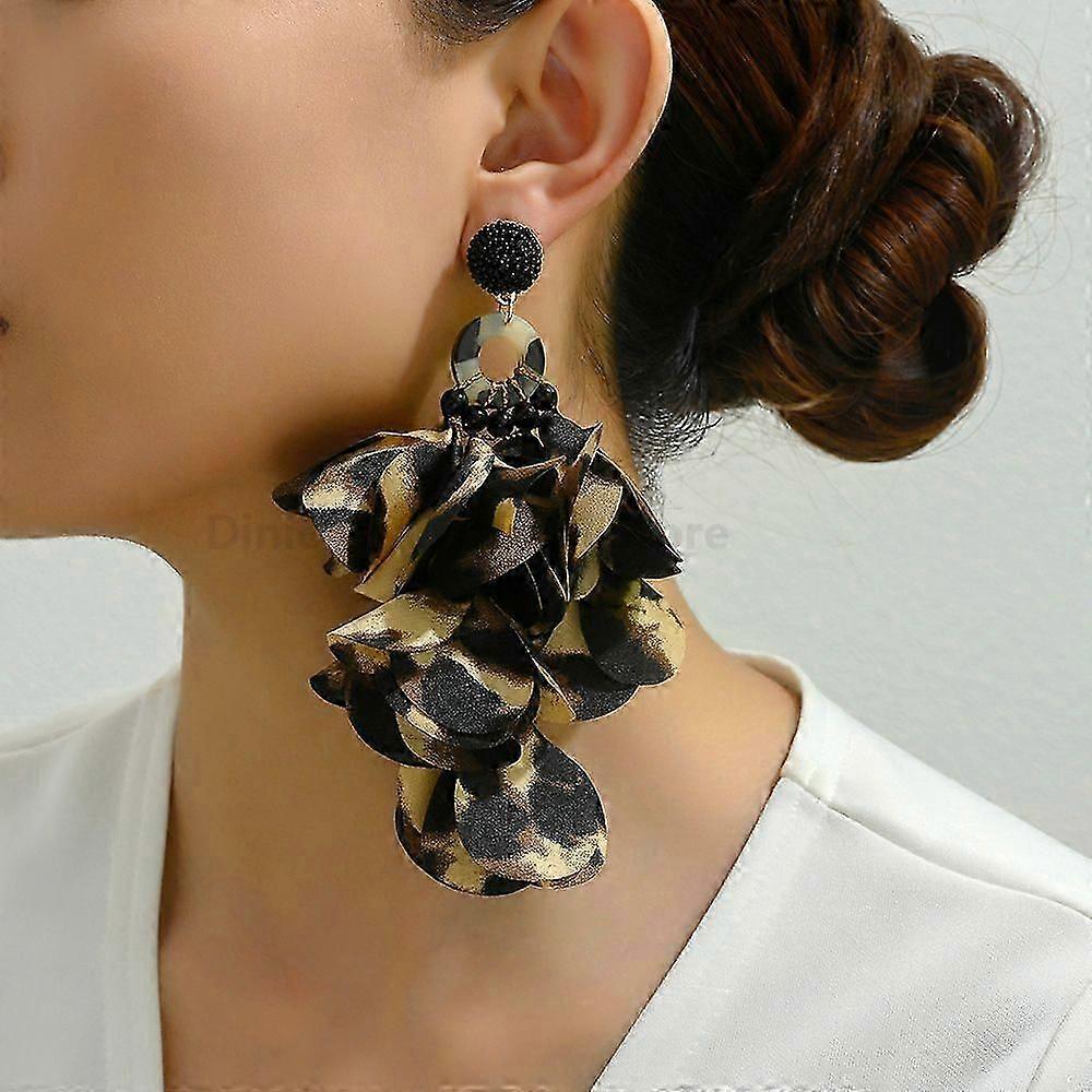 Luxury Wedding Party Dangle Earrings with Handmade Flower Decoration Leopard Style Fashion Jewelry for Women