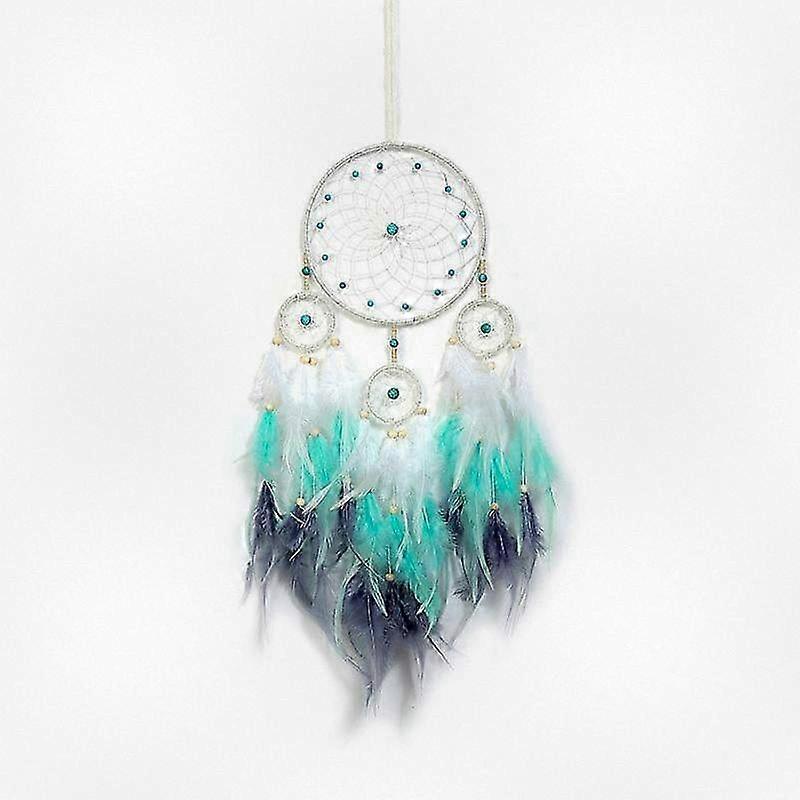 Handcrafted Blue and White Beaded Dreamcatcher with Feathers for Wall Decoration
