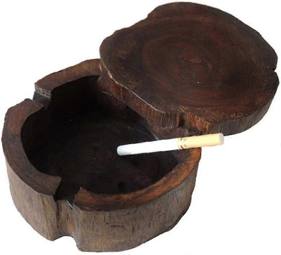 Handmade Vintage Wooden Ashtray With Windproof Lid Smoking Ash Tray (Random Styles) (brown1pc)