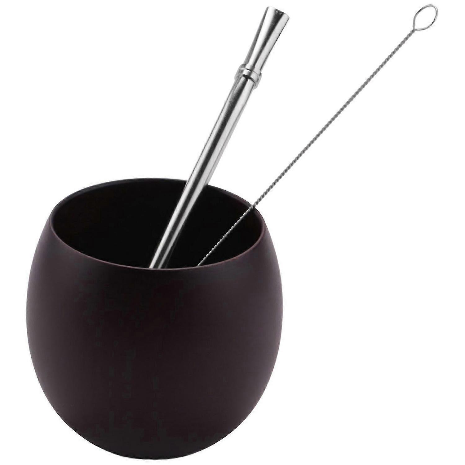 Handmade Wood Coffee Water Cup with Spoon Straw Brush 200ML(Deep)
