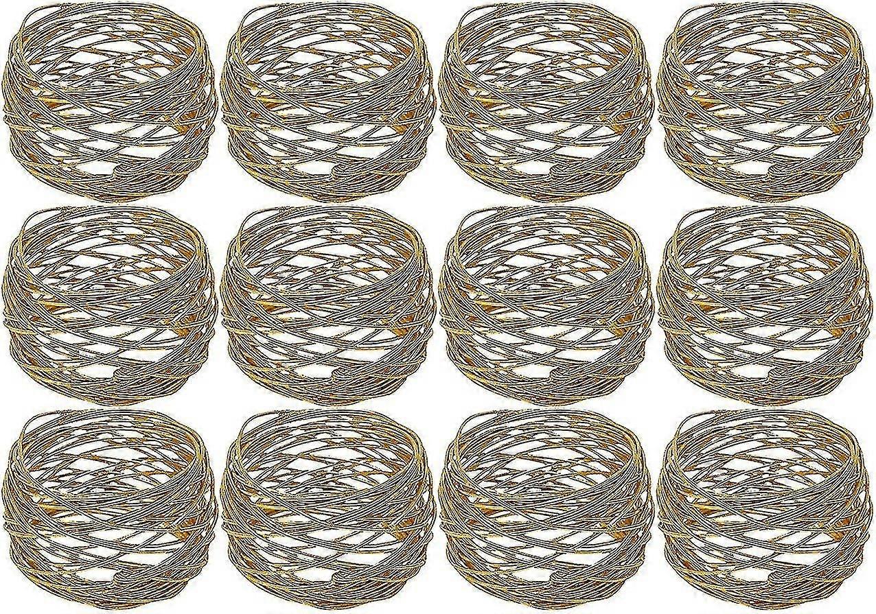 Handmade Gold Mesh Round Napkin Ring Holder, 12-Pack, Table Party Decor