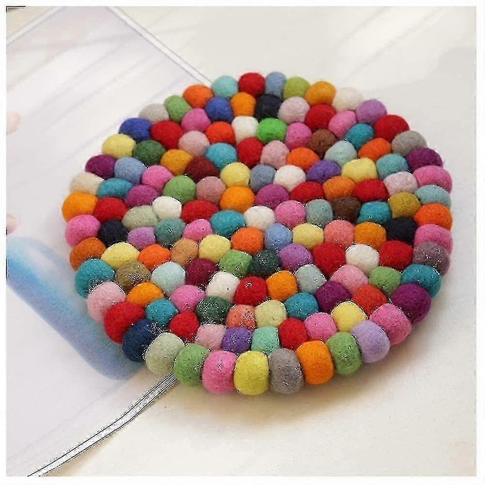 Handmade Coaster Wool Felt Ball Round Placemat For Coffee Cups And Teapots