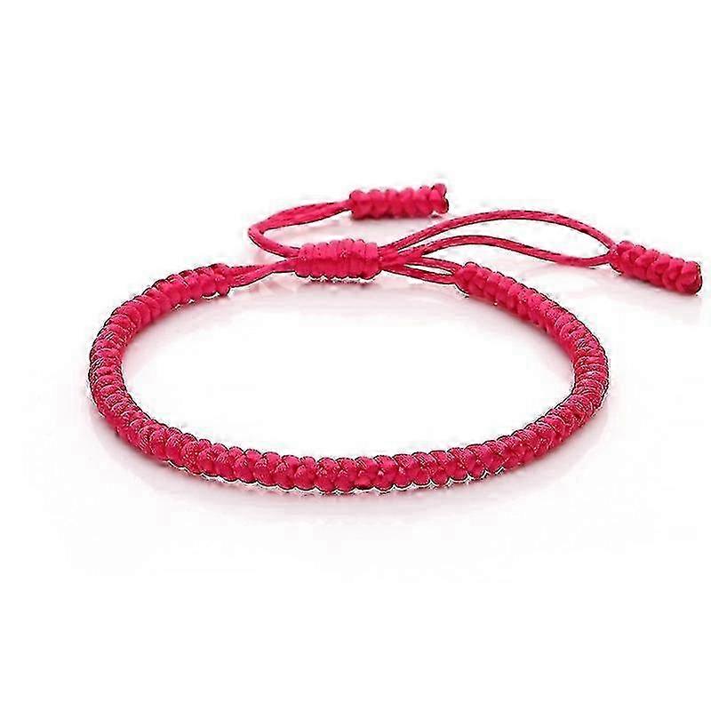 Handmade Tibetan Buddhist Multi-Color Lucky Knot Rope Bracelet Adjustable for Men & Women - Rose Red