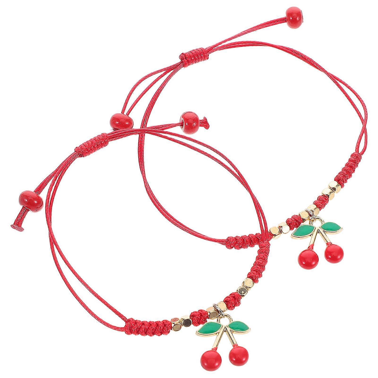 Handmade Bracelet Cute Cherry Friendship Bracelet for Women 2Pcs Adjustable