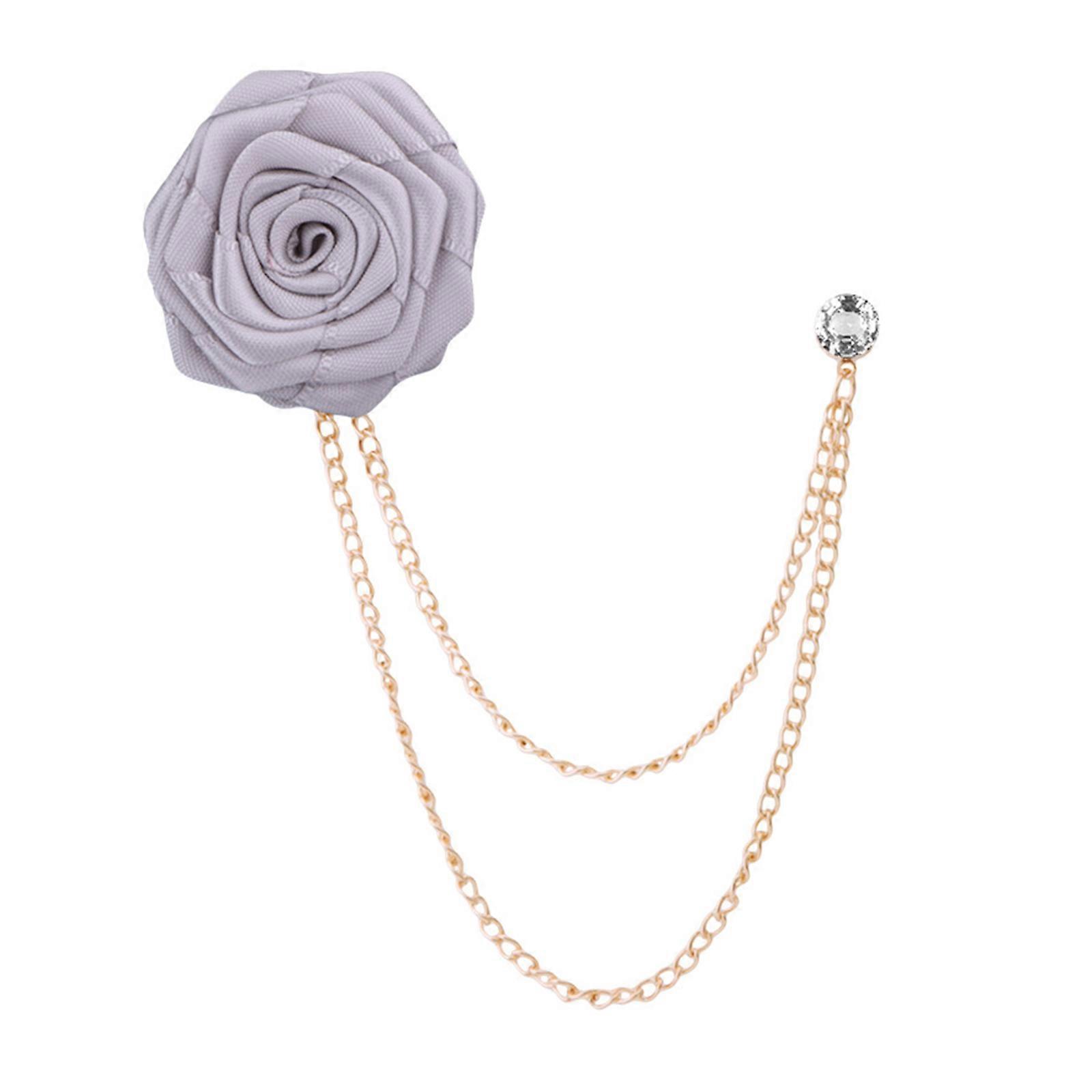 Handcrafted Brooches Wedding Cloth Art Rose Flower Brooch Lapel Brooches Badge Chain Tassel Suit Men Accessories silver gray