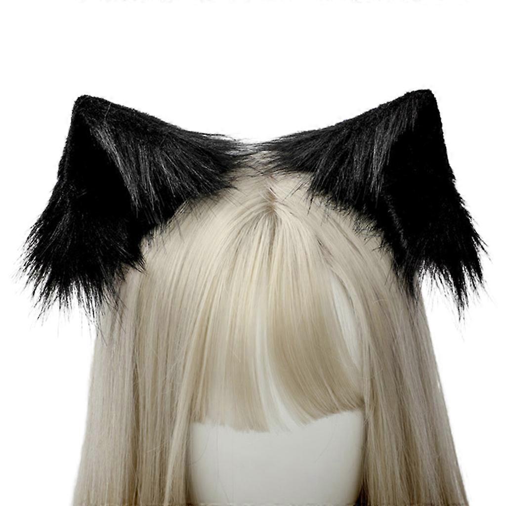 Handmade Faux Fur Kitten Ears Hair Clips Furry Animal Cosplay Hairpin Barrettes Black