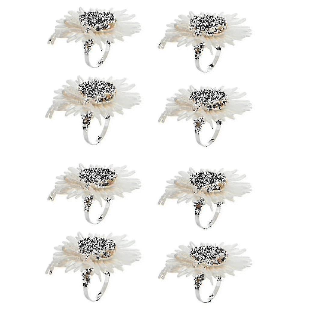 Handmade Flower Napkin Ring Holder - Daisy Napkins Rings Set Of 8, Napkin Buckle For Daily Dinning