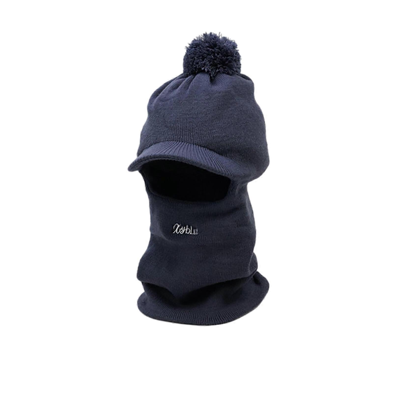 Handmade Hooded Hat Neck Protect Hat Elastic Size Winter Knit Hat Christmas New Year Presents for Students Teens Navy Blue