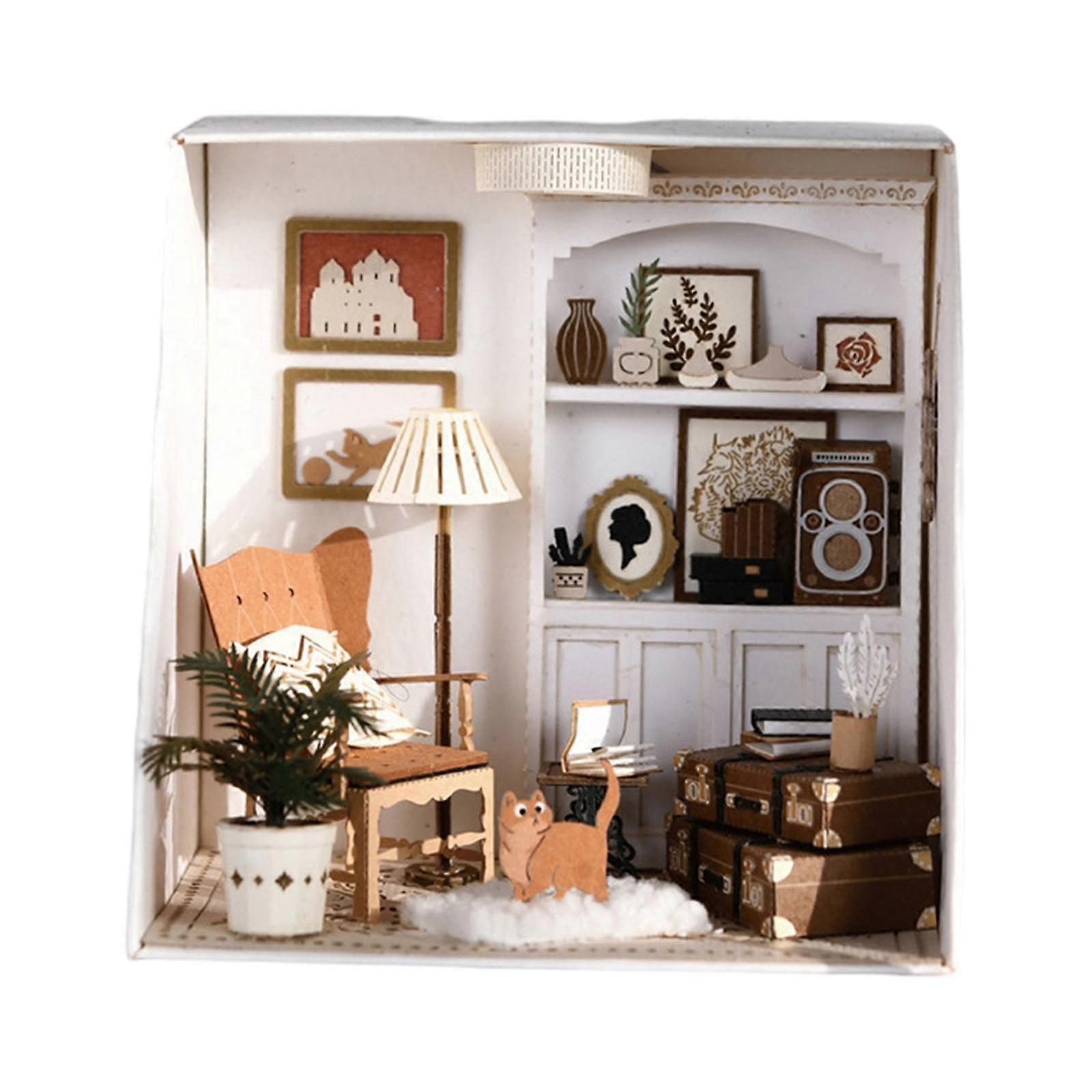 Handmade Miniature Kit Doll House, W/ LED Light & Furniture Set puzzle Model