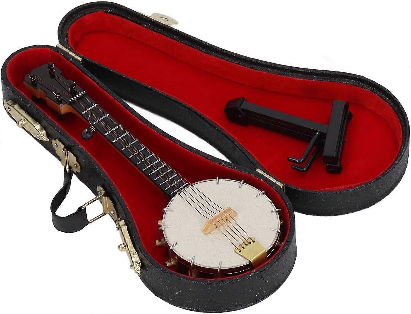Handmade miniature Banjo model doll house musical instrument display with bracket and box doll house accessories decoration (14cm Banjo)