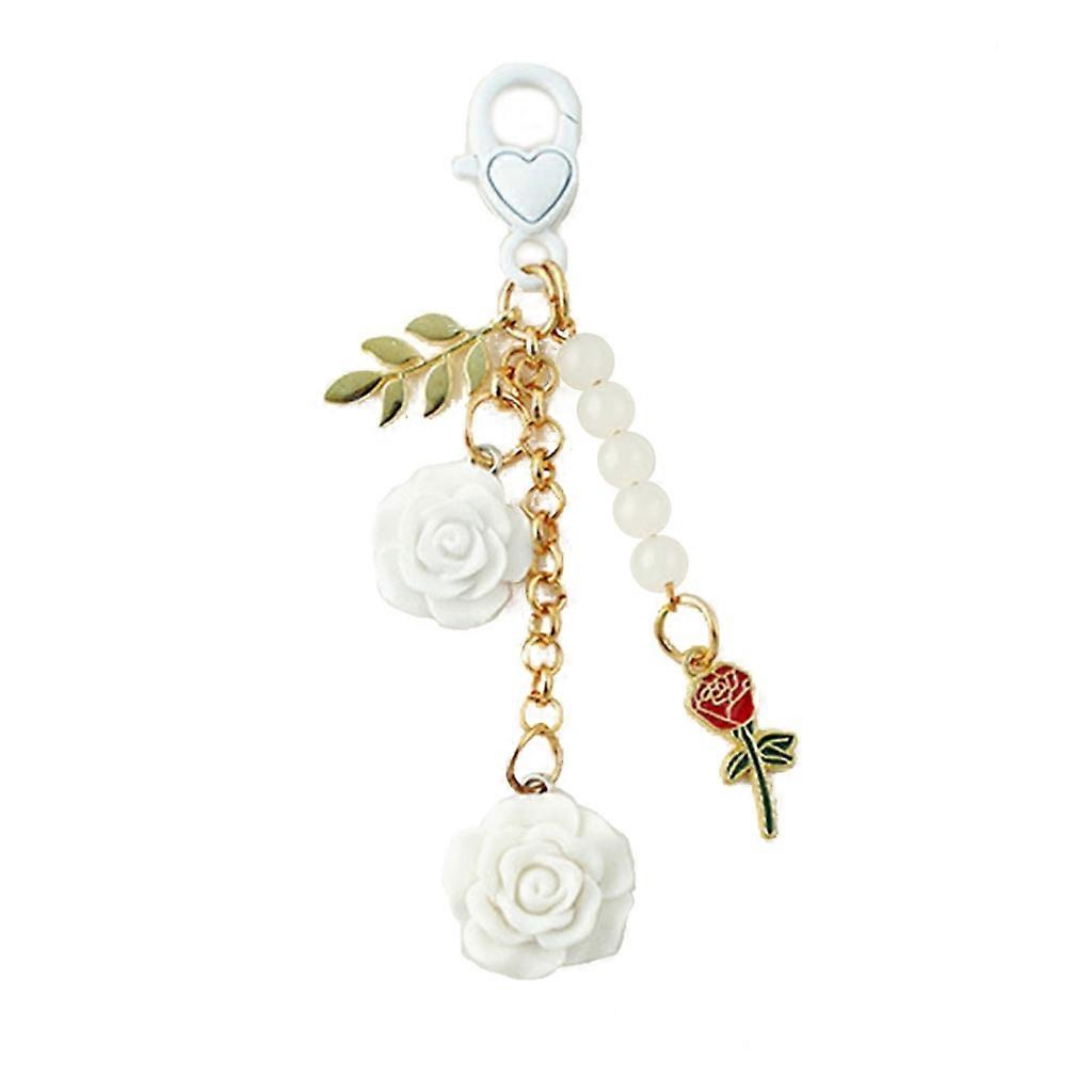 Handmade Rose Camellia Charm Keychains Car Keyring Sweet Bag Pendant for Women