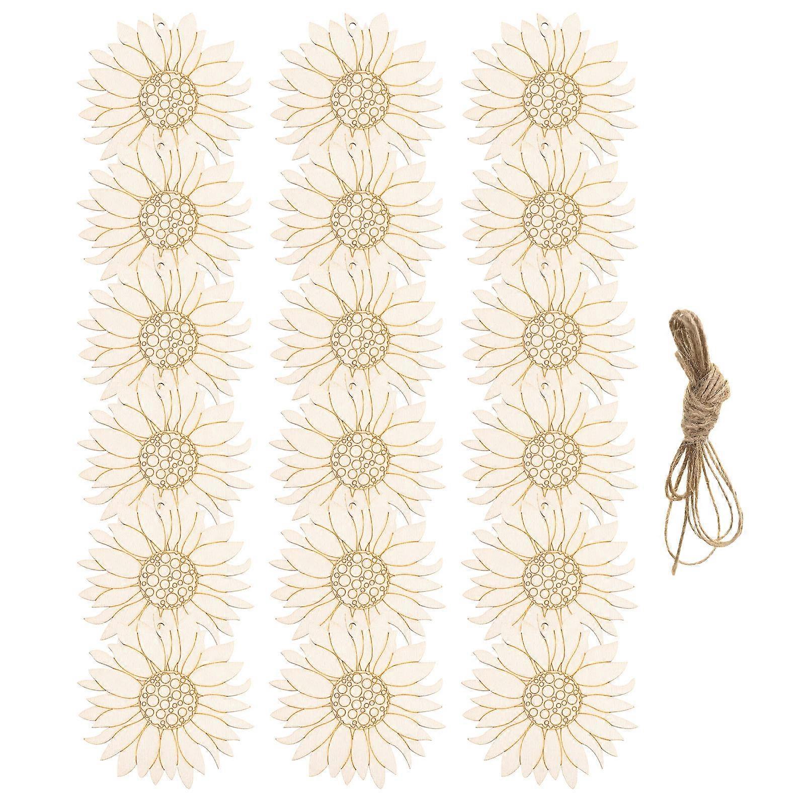Handmade Crafts Decoration Wooden Flowers Cutouts Safe Edges Gift Giving 2 Sets