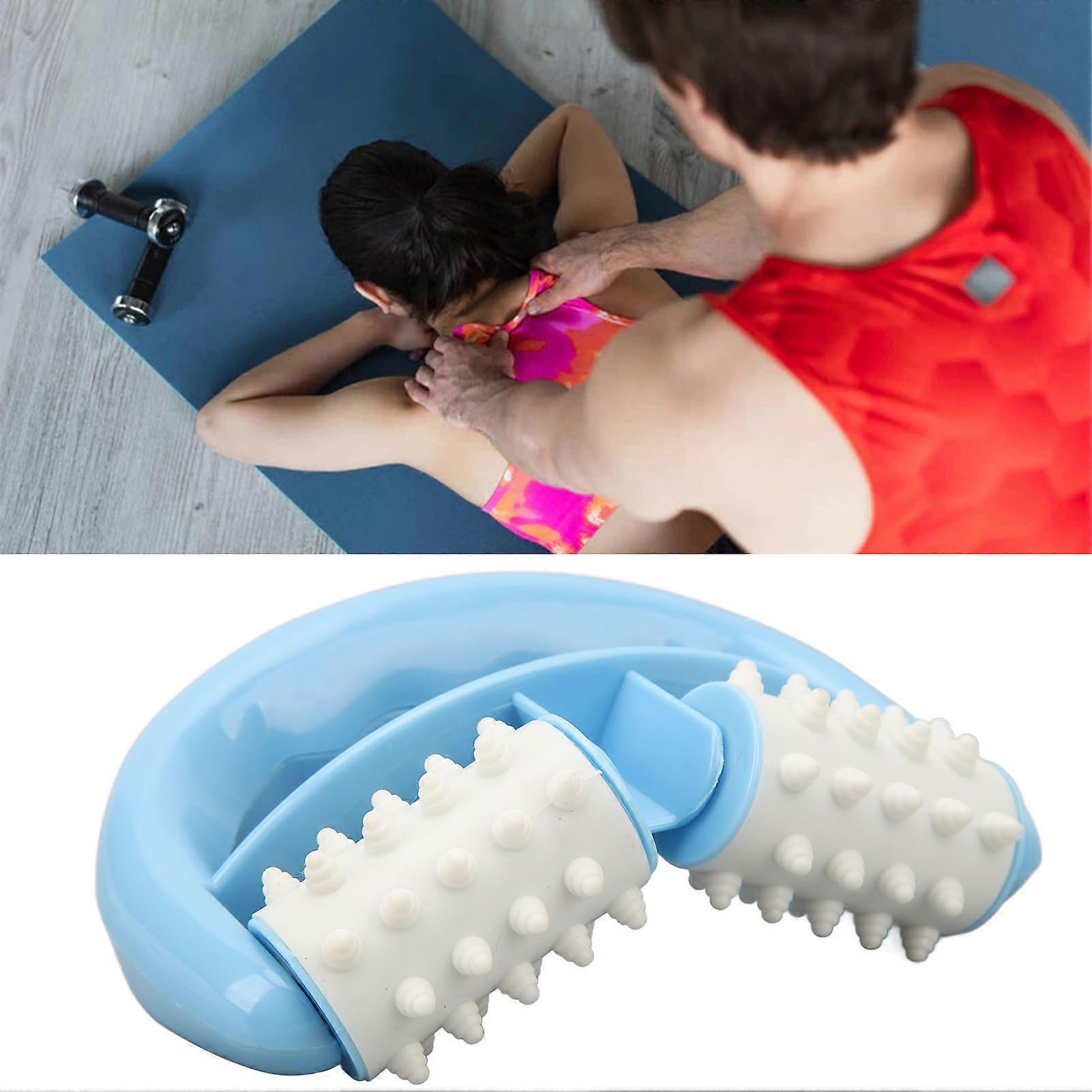 Manual Round Handle 2 Wheels Muscle Relaxation Reduce Pain V Shape Handheld Roller Massager for Legs Arms Back