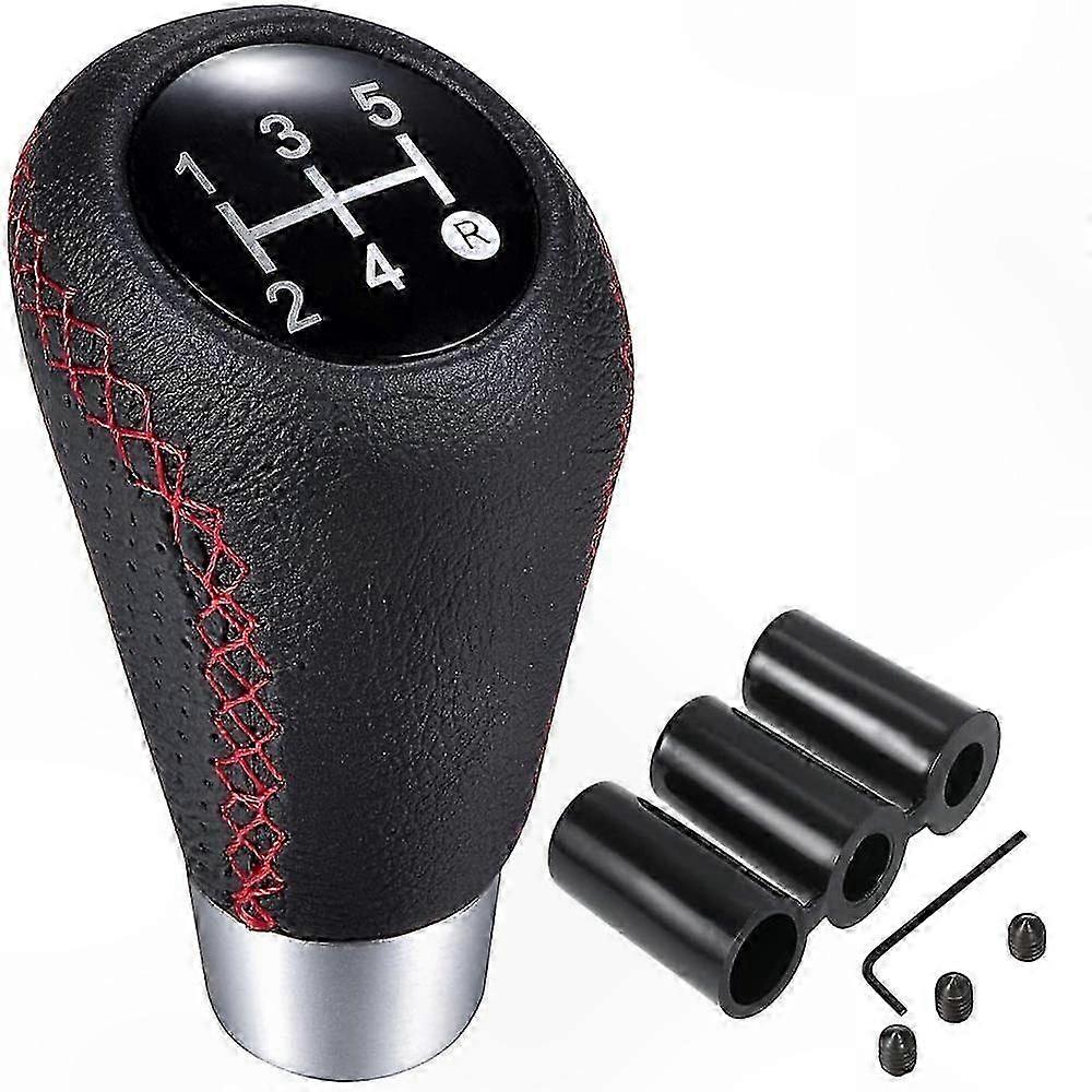 Leather Gear Shift Knob with Red ing for Manual 5-Speed Vehicles