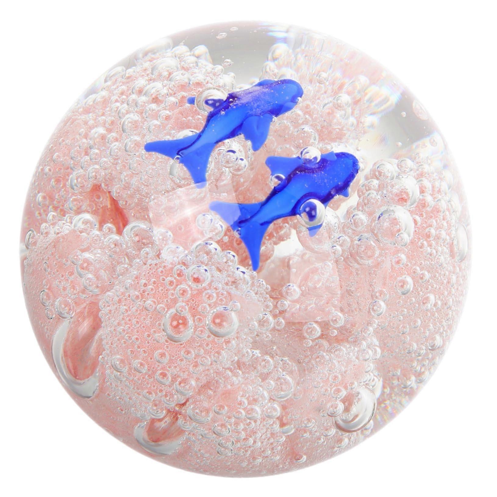 Handblown Glass Coral Fish Figure Ball Ornament 3D Sea Plant Aquarium Decor Themed Paperweight for Office Table Decoration