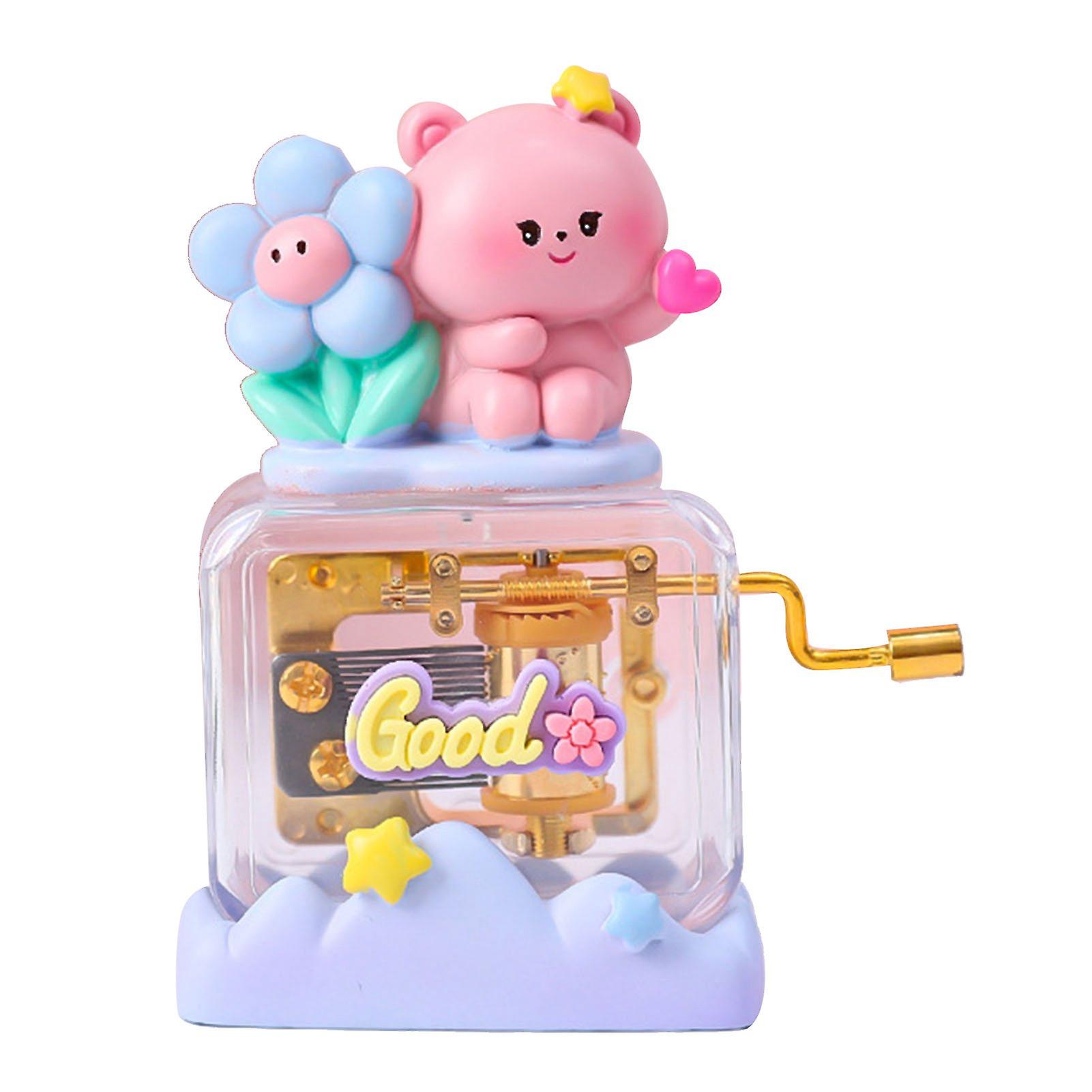 Hand-cranked Music Box Excellent Mechanism Cute Cartoon Appearance Colored Music Box for Decoration Gift Pink Bear