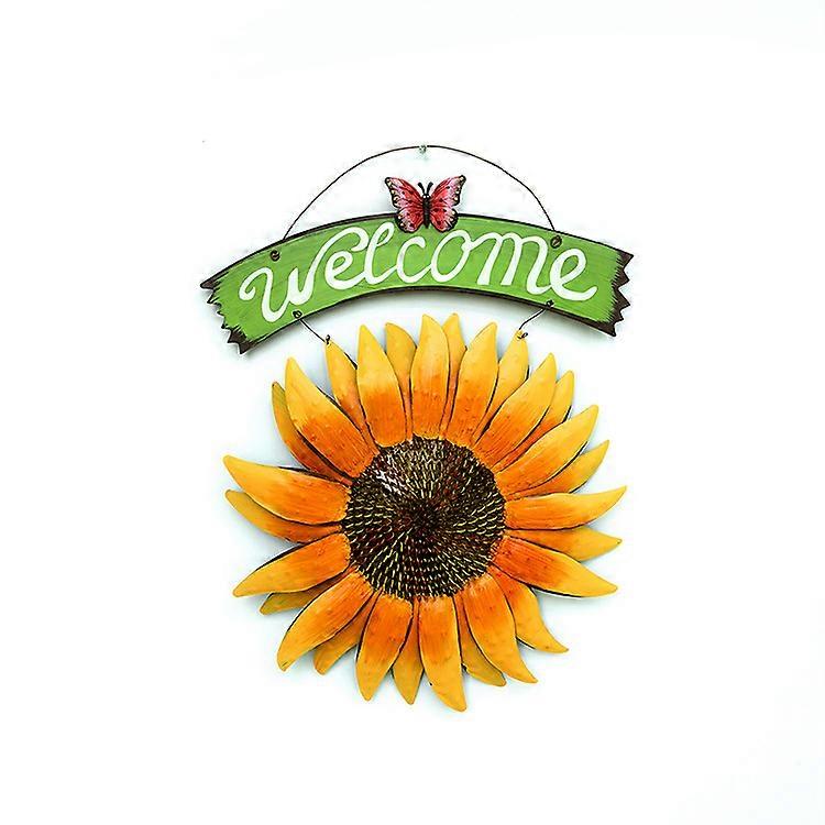 Handcrafts Vintage Metal Butterfly Sunflower Welcome Sign Front Door Decor Hanging Outdoor Wreath Decorative Door Porch Bar Cafe Shop Store(1 pcs, yel