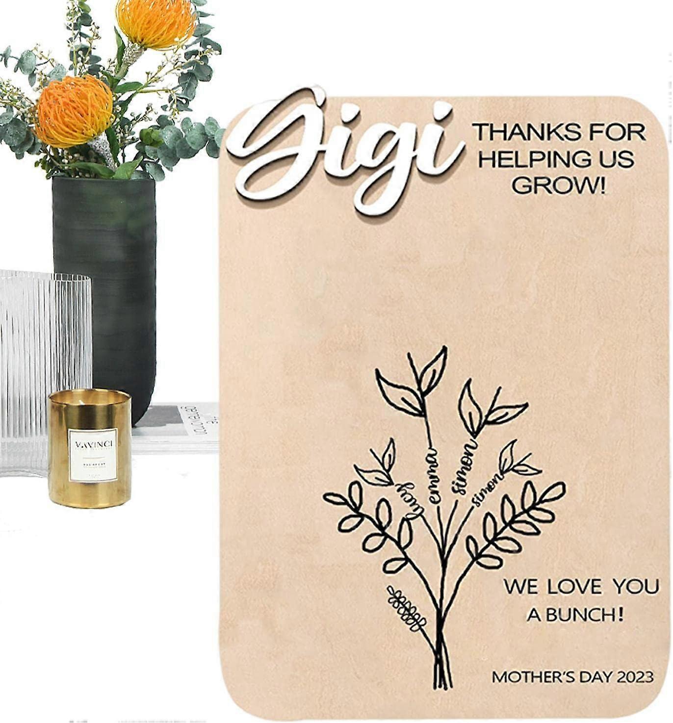 This handprint flowers sign is a unique and personal way to show your love. The sign is made of durable wood and features colorful handprints of your kids or grandkids. The color is bright and does not fade over time. The sign is easy to display on your dining table or desk and makes a great gift.