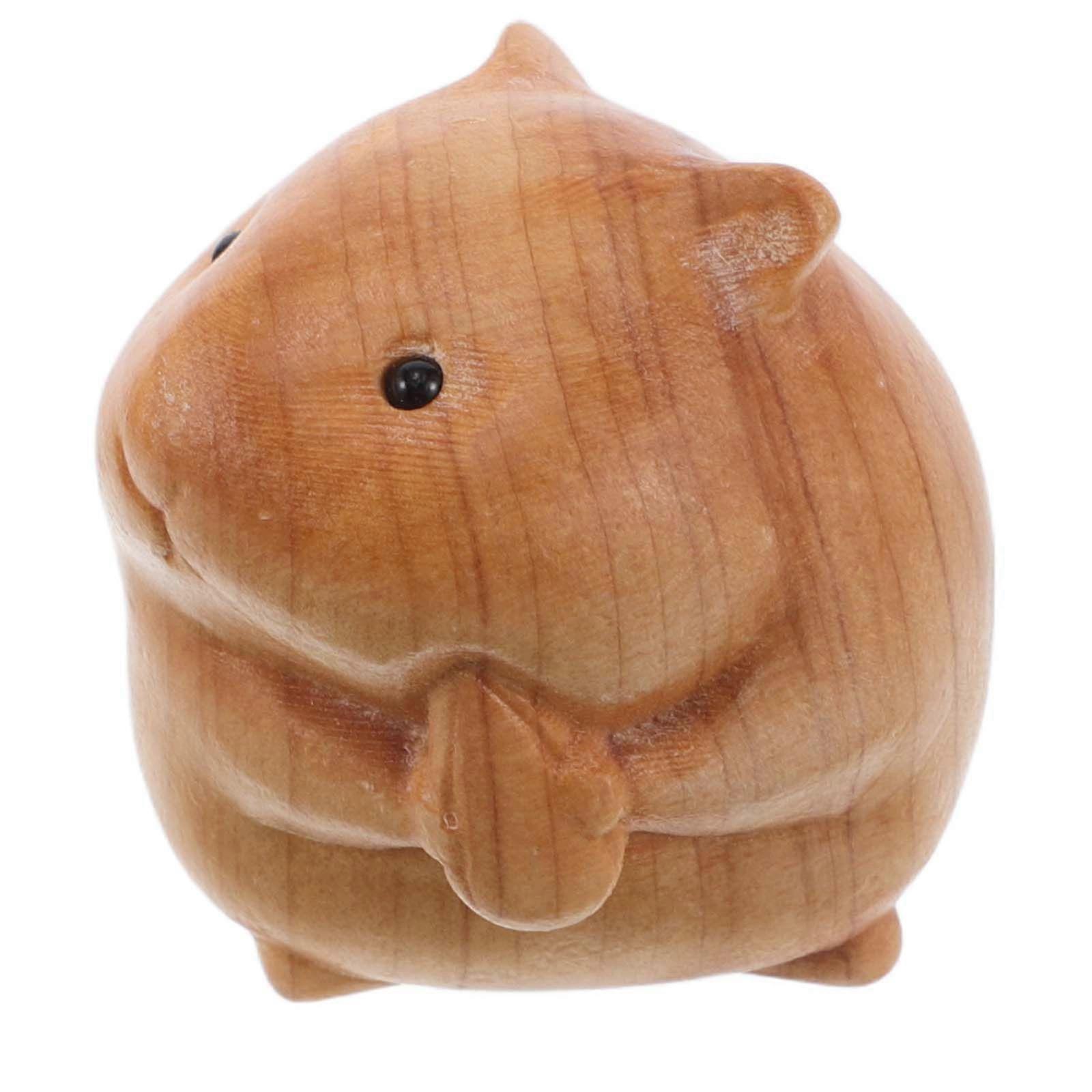 Hand Carved Wooden Hamster Figurine Exquisite Animal Sculpture For Desktop Decoration Wood Animal Craft Wood Carving Hamster Statue