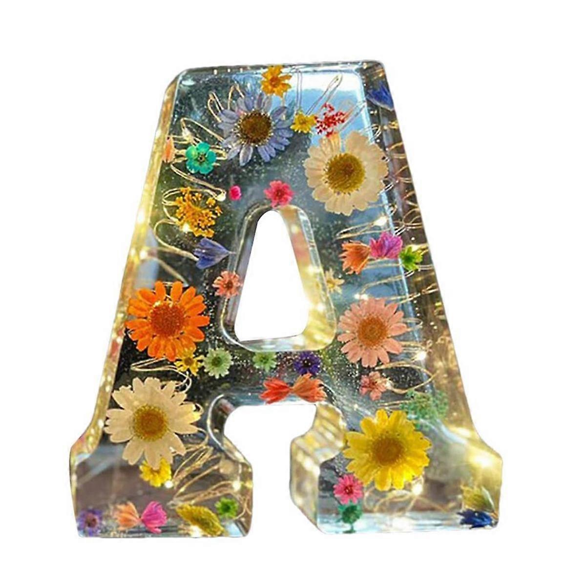 Letters Floral Night Light CreativeDried Flower LED Ambient Lights Resin Letters Lamp Table Ornaments Lighting A