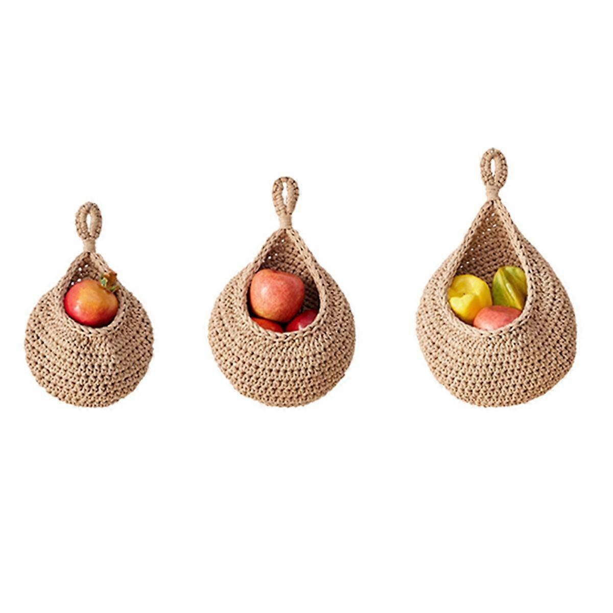 Hand-Woven Wall-Hung Vegetable and Fruit Basket Receptacle Container Wall-Mounted Plant Storage in Kitchen Garden