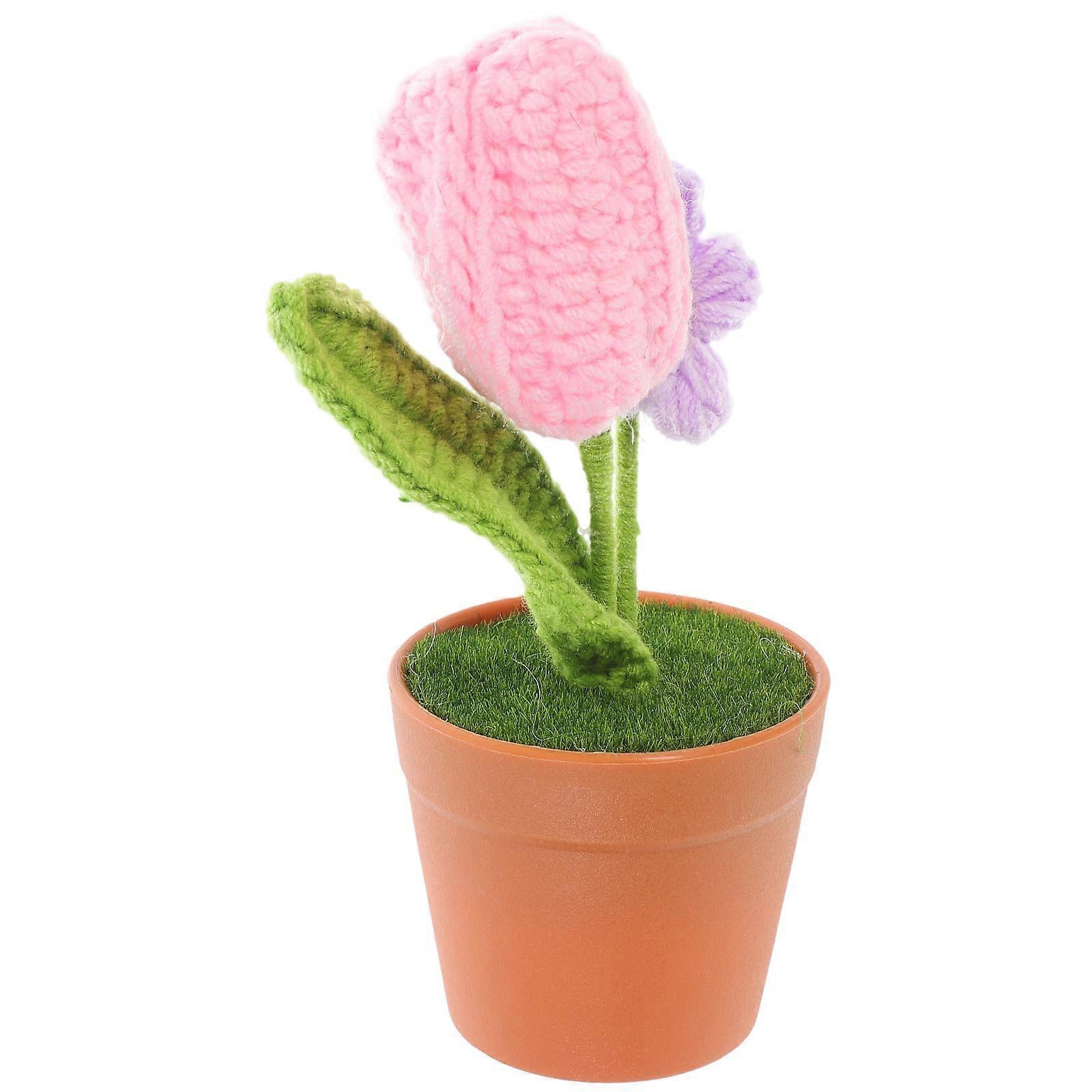 Hand-Woven Crochet Flower Mini Simulation Flower Pot Decoration Coffee Table Home Decoration 14.00X7.00X6.00CM 1Pcs