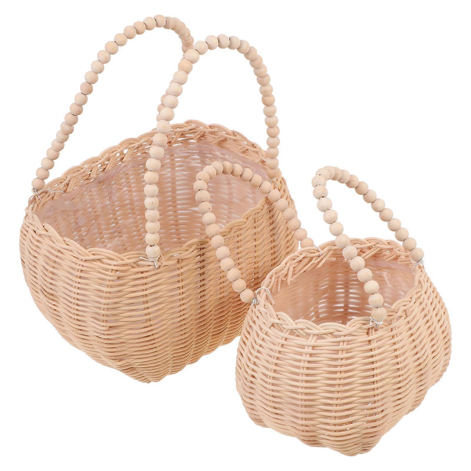 Handwoven Flower Basket Modern Farmhouse Style Storage Holder Round Shape Wood Material For Photography Props 2Pcs