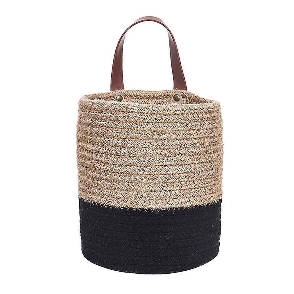 Hand Woven Hanging Flower Pot Basket with Leather Belt Handle Laundry Picnic Toys Storage Container Planter Holder