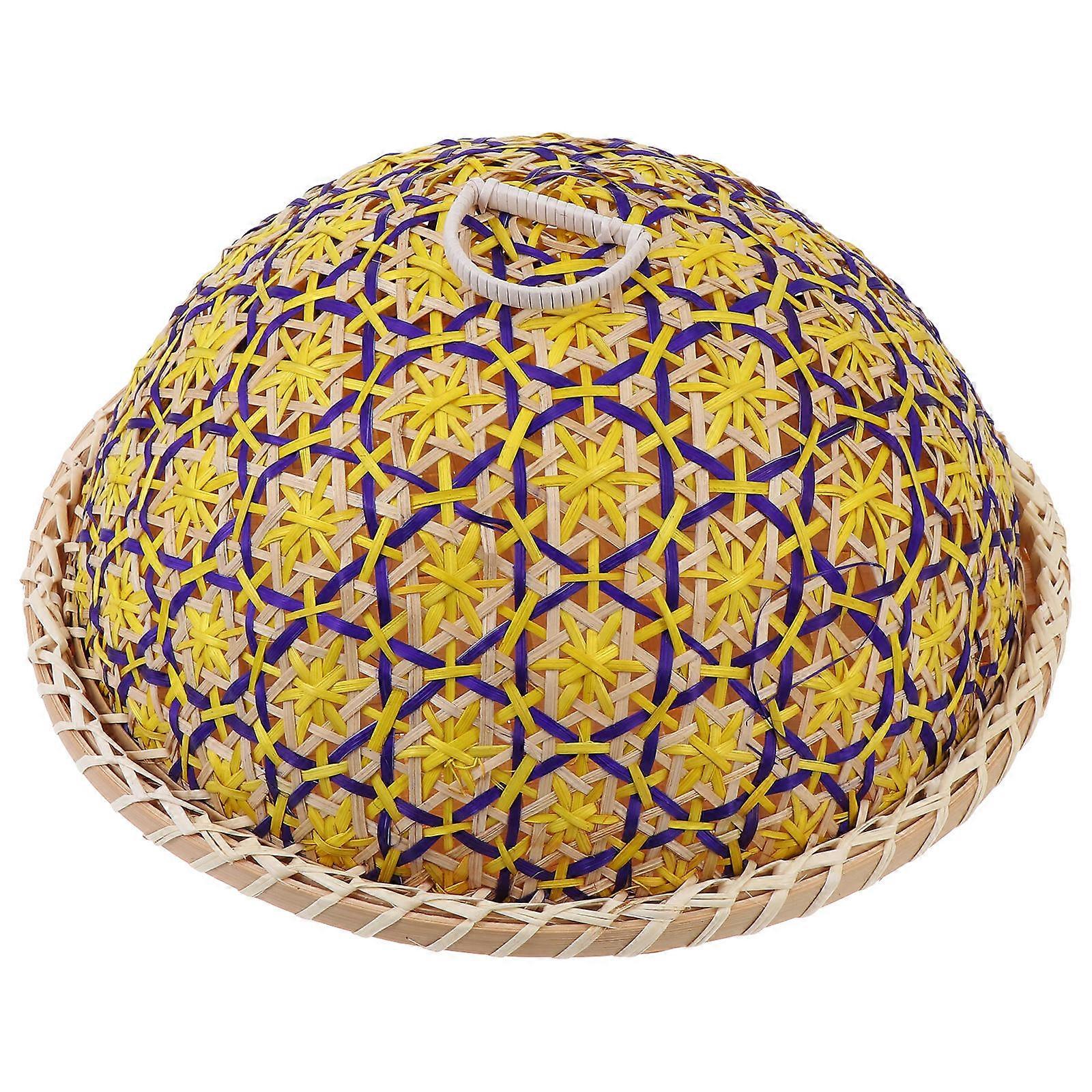 Hand Woven Fruit Basket Rustic Food Storage Cover Home Use Yellow 1 Set