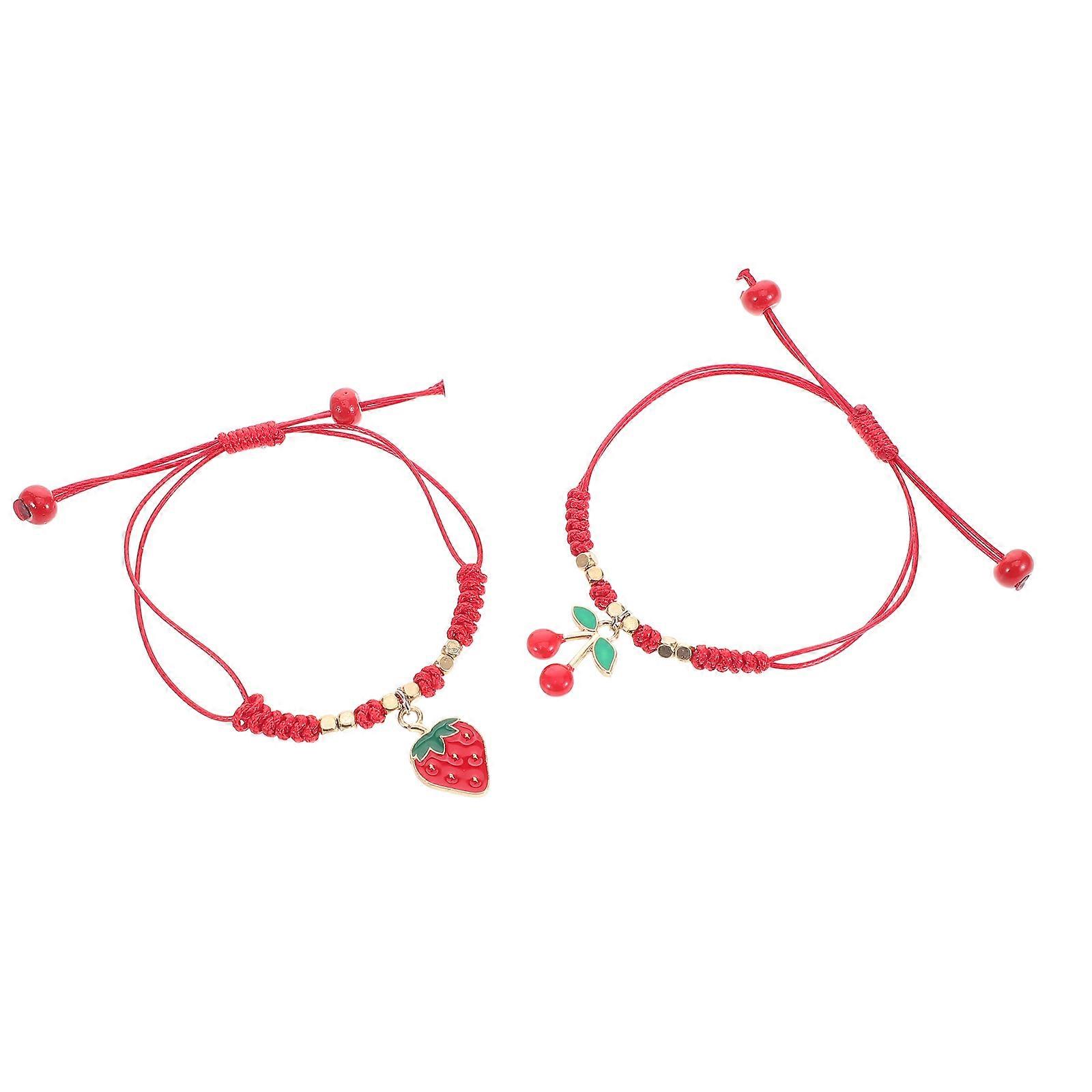 Hand Woven Friendship Bracelet Braided Red Cord Jewelry with Strawberry Cherry Charms Unique Fruit Themed Accessories for Women