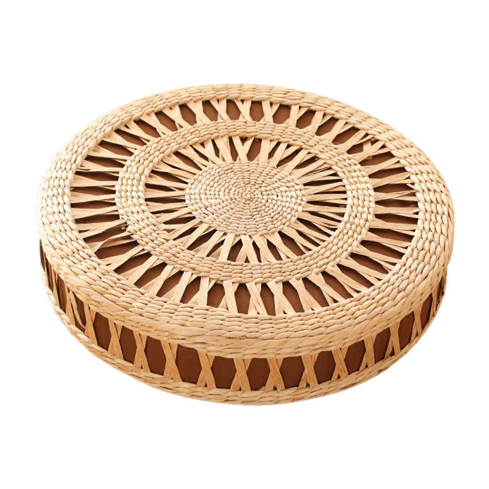 Hand Woven Meditation Pillow Round Straw Mat for Bedroom Outdoor Living Room Diameter 40cm