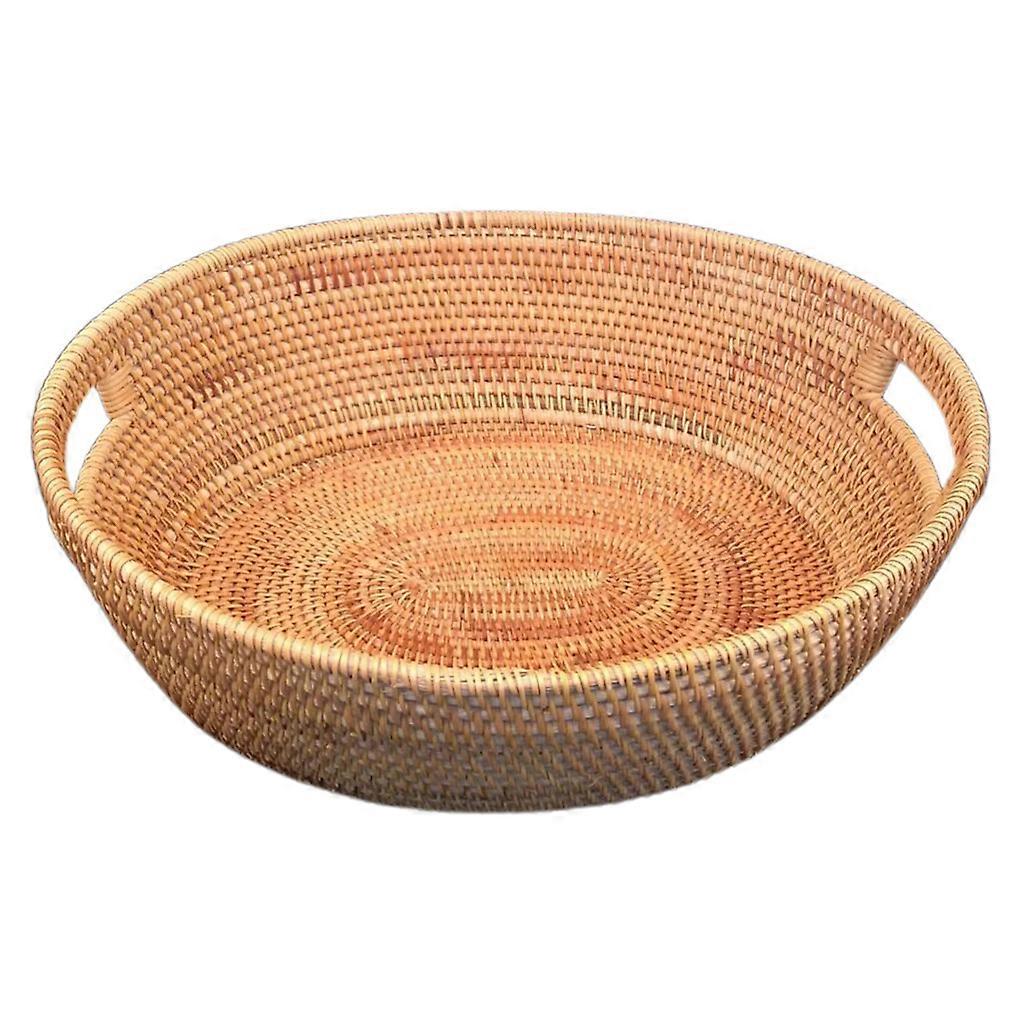 Hand-woven Rattan Woven Storage Fruit Vegetable Basket Double Handle Wicker Picnic Tray Food Bread Dishes Multipurpose