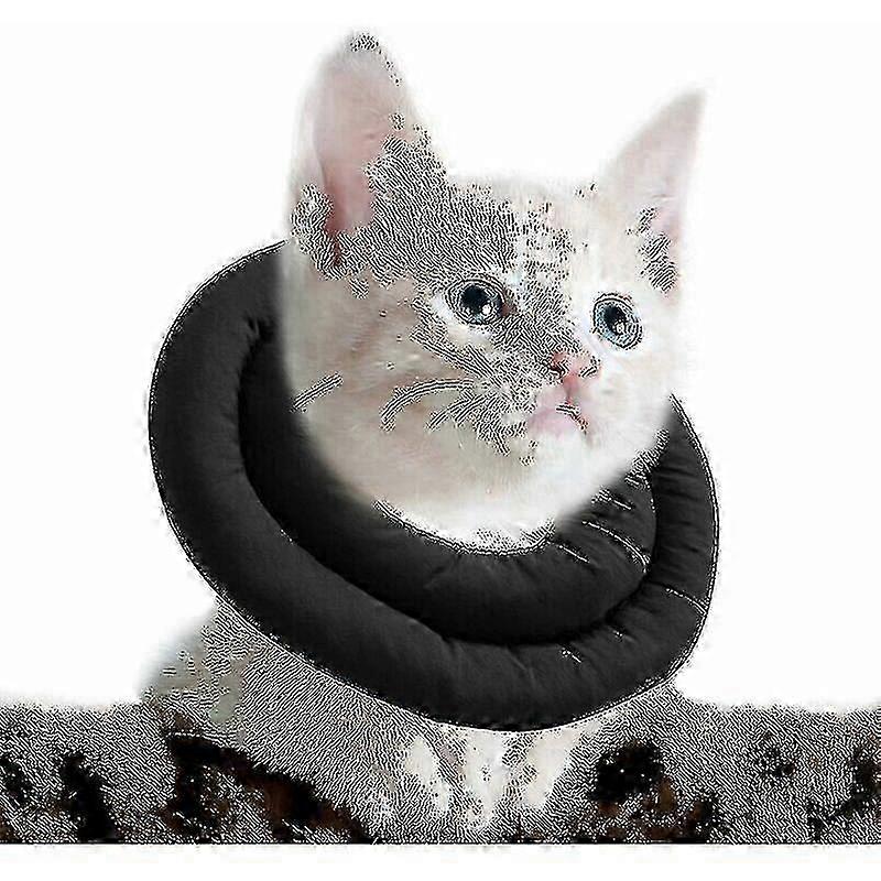 Post-Surgery Cat Collar, Adjustable Soft Recovery Collar for Small Cats (Black)