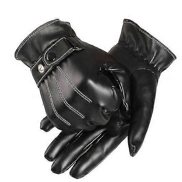 Gloves Men Winter Leather Black Gloves Button Warm Mittens Luxury Pu Leather Driving Men Genuine