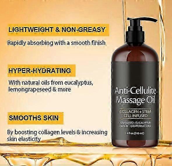 Anti-Cellulite Massage Oil Infused with Collagen & Stem Cells - Skin Tightening Oil Natural Cellulite Remover Therapy Oil for Cellulite & Stretch Mark