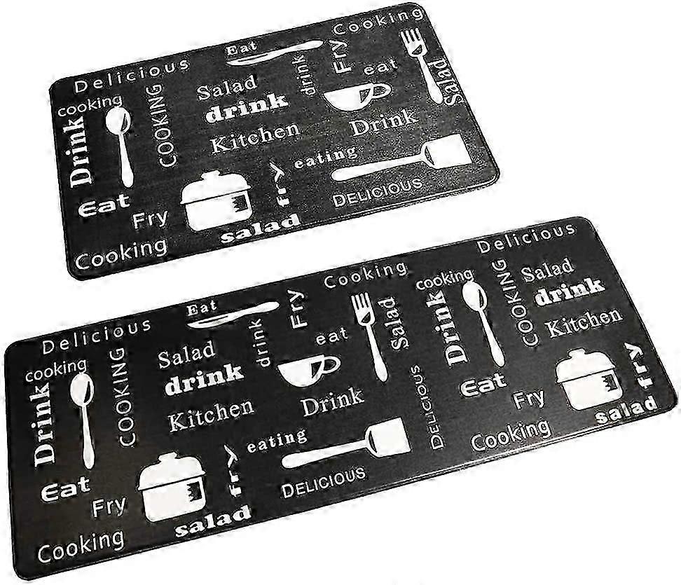 Anti Fatigue Kitchen Rug Set - 2 Cushioned Mats Waterproof Non Slip Black