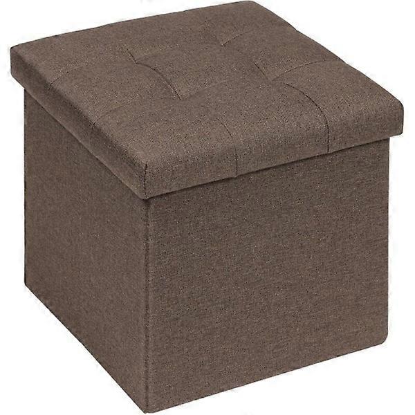 Folding stool storage chest clothes ottoman toy box bedroom furniture, linen fabric, 32 X 32 X 32 cm, brown