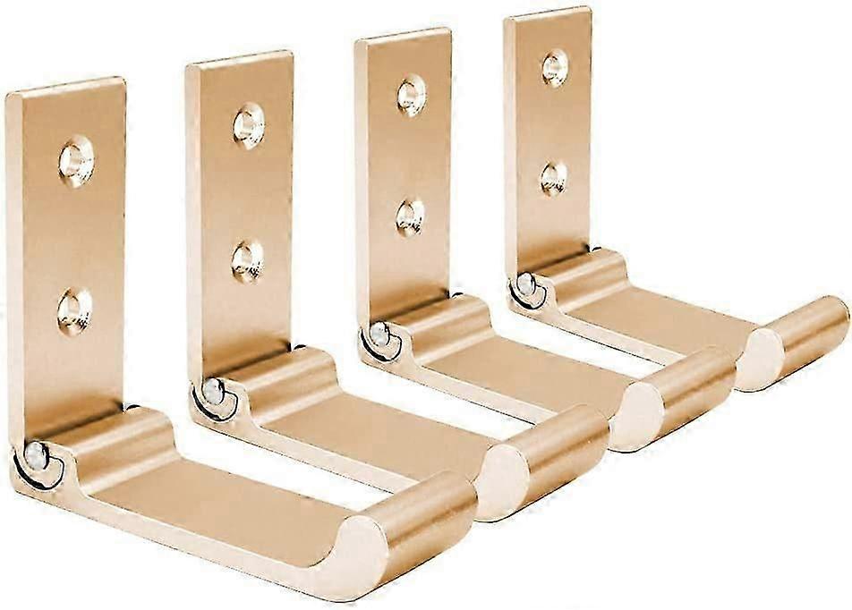 Foldable Wall Hooks, 4 Pieces Wall Mounted Helmet Holder, Invisible Coat Hooks, Aluminum Wall Hook, With Screws, Towel Jacket Hook (Gold)