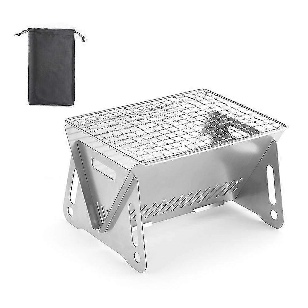 Folding Campfire Grill Portable Stainless Steel Camping Fire Pit Outdoor Wood Burning Stoves with Carrying Bag for Outdoor Picnic Home Barbecue