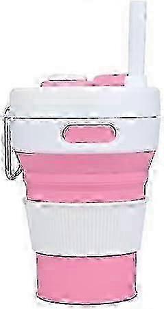 Collapsible Coffee Cup, Portable Foldable Travel Mug, 15.8oz/450ml Durable and Reusable Camping Cup, BPA Free Silicone Pocket Cup with Straw and Lid f
