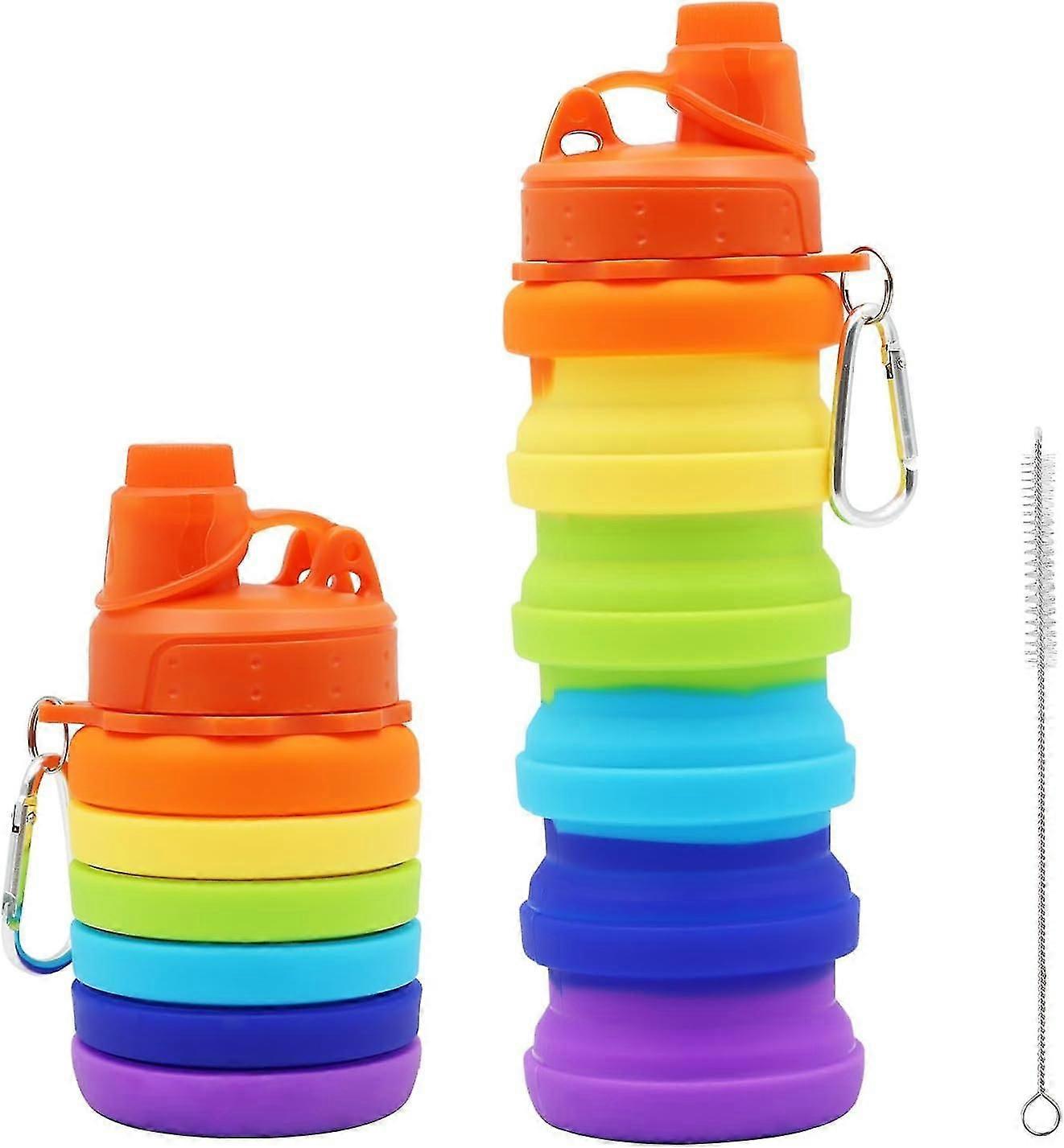 Foldable Silicone Water Bottle, 500ml Capacity, Rainbow Color