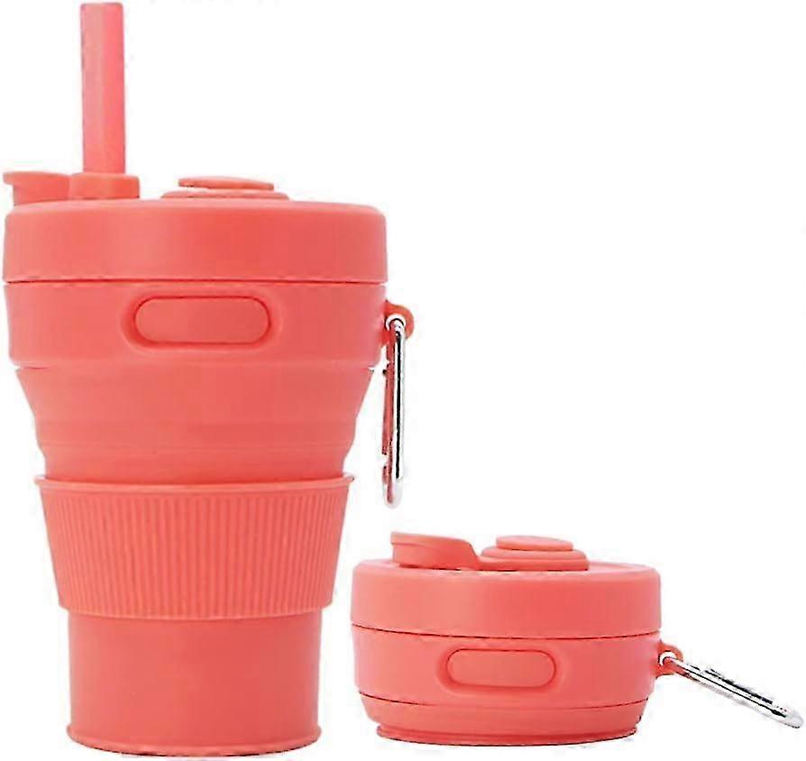 Collapsible Silicone Cup, Portable Travel Mug, Reusable Camping Cup with Straw, Foldable Drinking Cup for Outdoor Hiking, 450ml, Tangerine