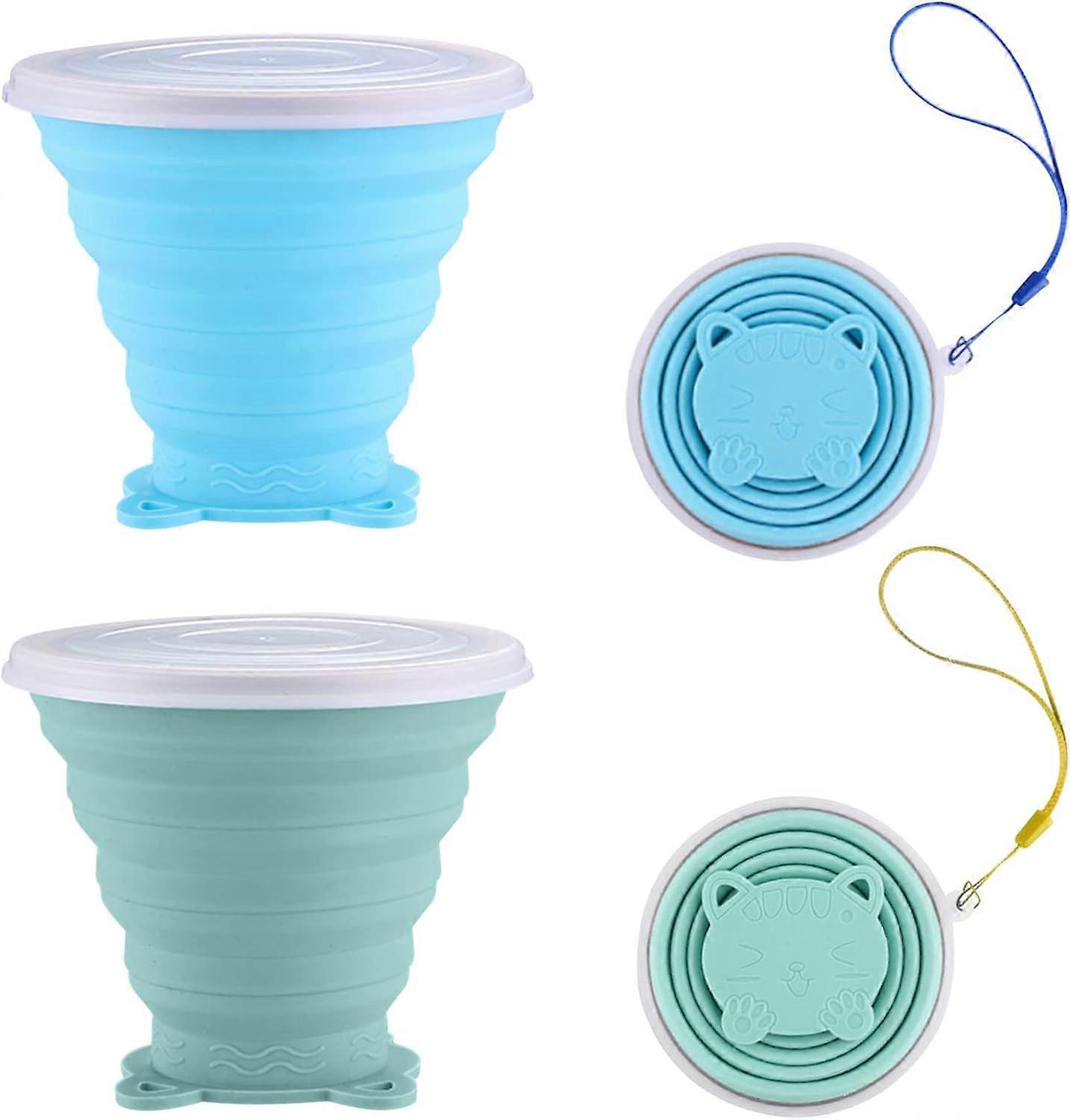 Foldable Silicone Cups, Retractable Foldable Travel Mugs, Outdoor Portable Telescopic Cups With Plastic Lid For Picnic, Camping, Hiking, Travel(Blue,