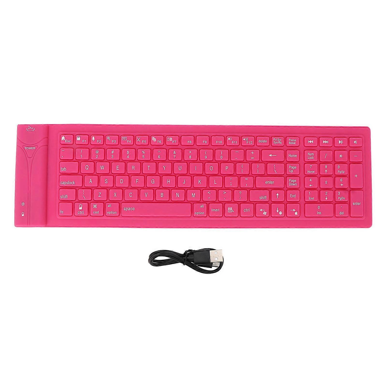 Foldable Silicone Keyboard 108 Keys Waterproof Full Sealing Design Mute Typing Foldable Keyboard Pink