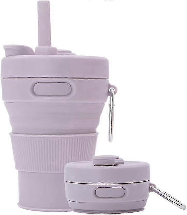Collapsible Silicone Coffee Mug, Portable Travel Cup with Straw, Reusable Folding Drinking Cup for Camping Hiking Outdoor, 450ml Purple